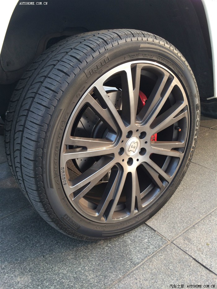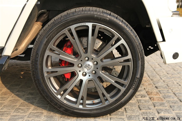 经过了几个月的折腾外观改装终于告一段落(内饰碳纤维组件ING……)。不过还好一切都很顺利从计划到去BRABUS谈价钱再到订件都超顺利,也是因为有一些零件国内有货(例如轮毂  就这哥们最TM重)其他的零件全部都是从德国BRABUS原厂进口的,并且所有的件都有货品编号和产地哟,(所有的零件连订的时间再加上报关的时间一个半月左右其实挺快的)遗憾的是轮毂是22的不是23的,真心的说太喜欢23的了,其实当时订的就是23的,但是305/35/23的倍耐力轮胎全国都找不到,订货得好几个月,只有横滨的有货可是我真的不喜欢日本人的东西,所以只好改22的了(有现货),305/35/22轮胎也有货,调货一周左右果断下订哈哈,为什么是305/35/22而不是30/22呢,因为这是官方给出的最优尺寸,上轮毂的时候还要用到原厂提供的轮毂垫片(前轮30MM后轮35MM看看图片是不是宽的吓人),不过开了一周市区各种路感觉选22的还真的没错,35的扁平比也还是有一定的越野性能的(估计23的现在轮胎已经屁屁了),昨天又跑了200多KM高速抓地力相当棒不过方向盘对崎岖路面的反馈真的是太敏感了(但是我之前说过讲究舒适兄弟们可以选择揽胜,揽胜是给爷们开的G级AMG是给硬汉开的当中的区别大家仁者见仁吧)。