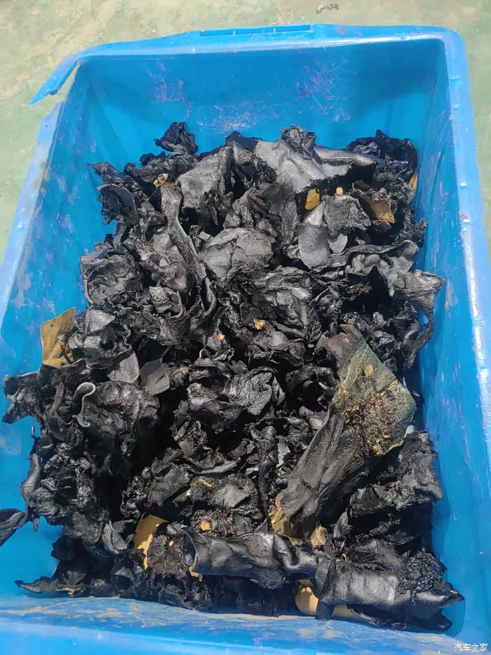 拆开地毯后发现原车的沥青指针有小部分开始融化,靠近闻那个气味啊真大,就是暴晒后空调出风口出来的味道,果断整个底盘拆除原车的沥青