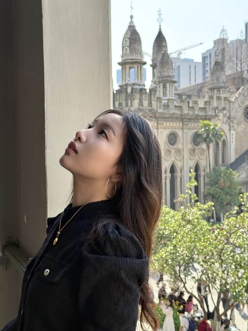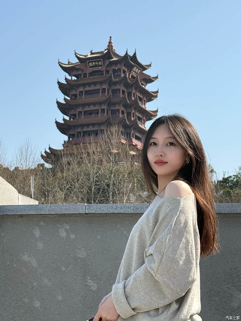 黄鹤楼前,她微微一侧,风吹动她的长发,整个人散发着温柔的气息。