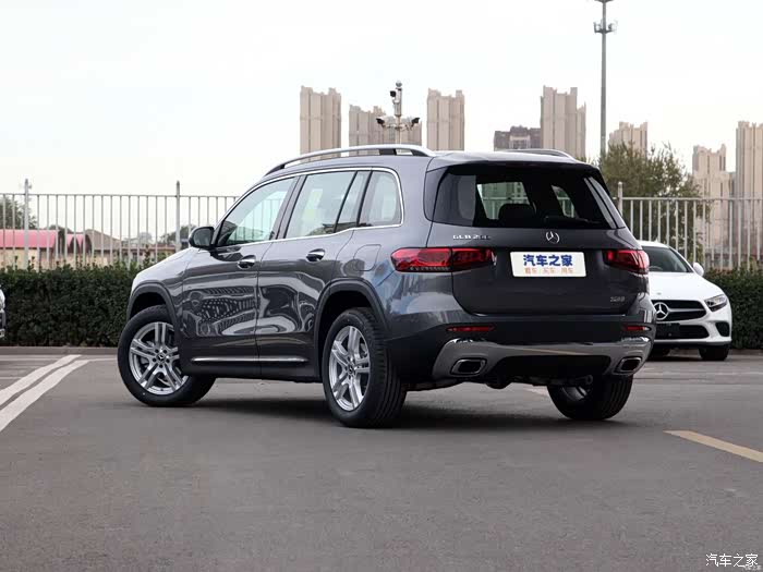 从侧面来看,奔驰GLB的车身线条较为平直,这样有助于它提供更大的车内空间,也能让第三排拥有较好的空间体验。这款车的尾灯设计与奔驰GLC略有相似,同时内部也采用了奔驰最新风格的环状LED灯带。参考海外版,未来不同的车型版本会采用不同的后包围,双边共两出排气的造型也会有所区别。