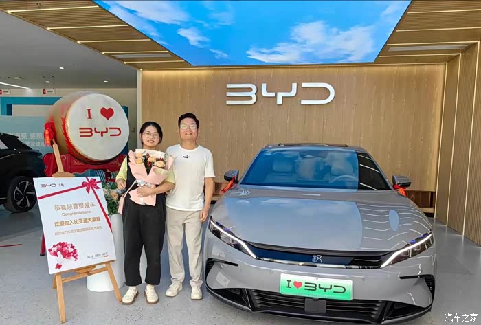 确定好车型,新车就不远。在武汉找了3家比亚迪直营店比价,确定了一家有2025款汉EV现车并且优惠最大,关键未央灰还不加钱,这你受得了。上周天付了订金,周二去提车。汉EV605配置也都拉满,座椅通风加热按摩确实舒适,车内没啥味道还有空气净化和PM2.5过滤,对媳妇和宝宝友好,丹拿音响效果很好,小迪虽然没小艺和小P聪明但是满足正常的行车需求足够,可能我对智驾要求不高,还是喜欢自己开车。最重要未央灰,颜值真的高,帅得一骑绝尘。