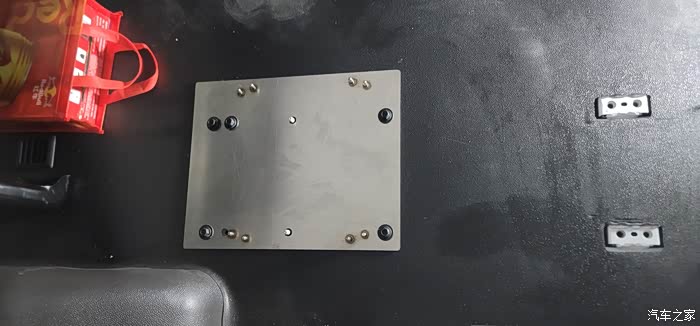 因为不想在车体进行打孔安装,所以找了一个不锈钢加工厂定做了螺丝孔转换支架。