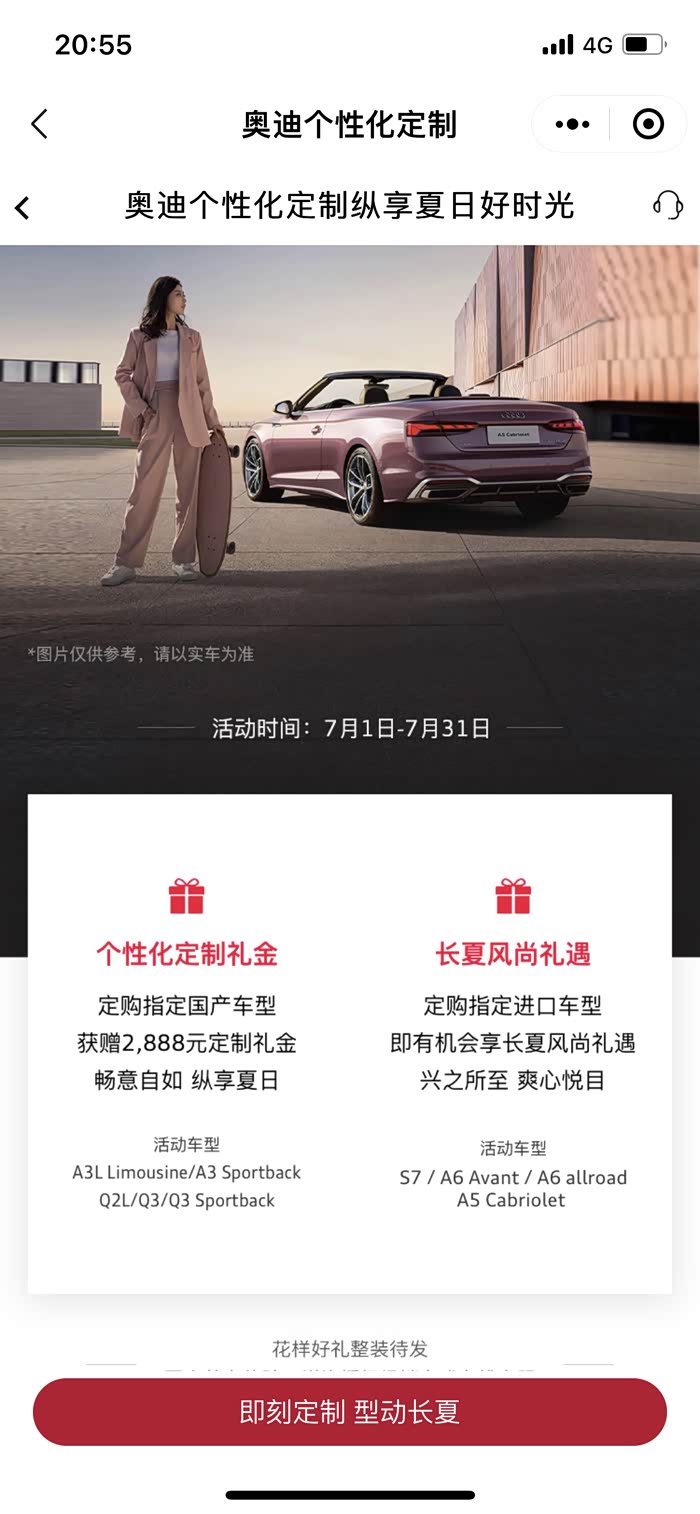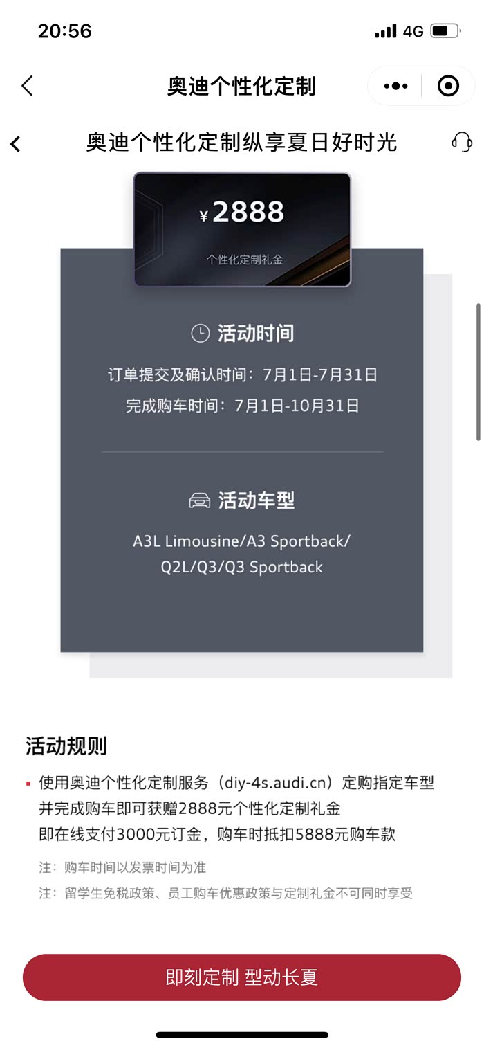 7月奥迪OTD推出个性化定制活动,OTD订单支付3000提车抵5888,本来在7.26日下单OTD,准备本周提车,奥迪官方与经销商互相推卸责任,不承认此活动。我的下单时间和提车时间完全满足活动要求,找了官方客服态度极差,电话客服也是一直让我等消息,等了五天三个工作日没有任何回应。本人感到非常失望……言而无信最为可恶,消费者要擦亮双眼,不要被虚假宣传所迷惑