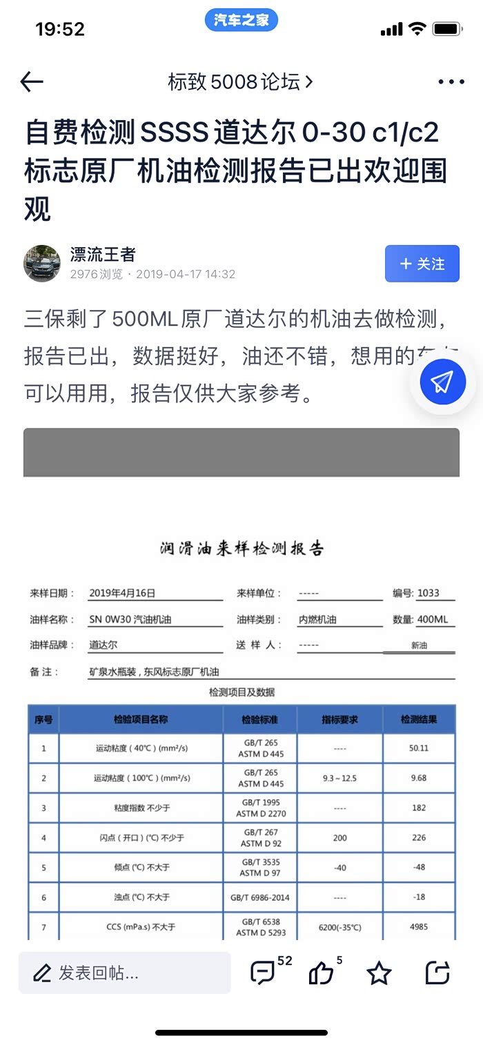 由道达尔或者是长城代工的原厂机油,由于原厂机油的品质不及大品牌的美嘉壳,对于3年外的车子完全可以使用油品更好,基础油用料更好的第三方品牌的机油,但是绝大多数车友不太了解机油这个后市场,于是我在此普及一下机油的知识,以5W-30为例:5W代表着低温流动性,按照数值代表的含义:数值越小意味着低温流动性越好,
