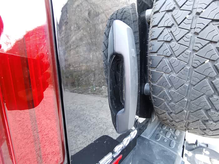 后备门上的全尺寸备胎和粗壮的门把手,确实让整车看起来更有越野范儿,握感也挺扎实,和整体风格挺搭配的。