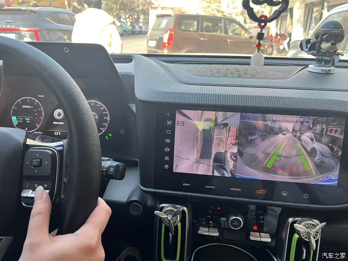 快过年市场也热闹起来,来采购礼品的人也不少,路边的停车位都显得紧张了,属实是有点小,还好大狗有360全景影像,倒车的时候自动开启极大地简化了倒车操作,减少了盲区带来的风险。大狗的360全景影像提供了第一视角和第三视角,可以根据需要自由切换,观察车外的各种方向路面情况,中控屏下方的实体按键就可以切换,好操作也不用手忙脚乱的在中控屏幕上乱点。