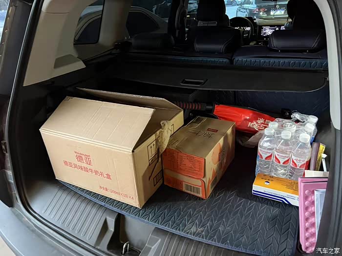 买些水果干果一类的。买的牛奶一类的都带着箱子,还真挺占地方,还好大狗的后备箱够大,如果把后排座椅放倒,还可以进一步拓展空间,大狗后备箱还有一个优点就是平整和方正,平坦可以保障放东西不易倒斜,而方正就能够最大程度的利用好空间,装更多的物品,把年货摆的整整齐齐,满满登登。