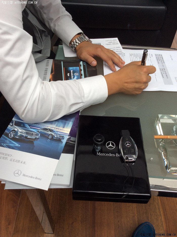 晚上喊了在奔驰公司修车的好朋友一起吃饭,边车边聊奥迪宝马的感受,聊到这里他说大哥要不去看看E260,40多万应该又是另外种感觉。于是第二天大清早就带着老婆到了奔驰4S店,才进大门老婆就被台赤铜棕颜色的轿跑给迷住了,那迷人的狐狸尾灯,修长的车身,真皮包裹的内饰,再加上没有窗框的车门简直是帅呆了,老婆说这才叫“车” 这时销售来了,经她介绍才认识了这车"奔驰cls300 自然吸气3.5排量的,是cls改款前最后一批车了,改款以后就是2015款涡轮增压的,出于我对自然吸气偏爱,自己也很喜欢并要求销售试驾,销售说没有cls的试驾车,但是可以试驾另外款和这功能差不多的S400,试驾回来感觉就一个字“爽”