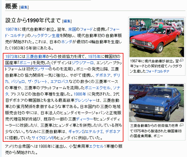 原帖由 kiaa 于 2011-01-19 12:53 发表 现代车的原型是日本三菱车。过去,现代车导入的车型,主要技术都来源于三菱汽车(最新技术支援)。现代汽车,起亚汽车,三星电子,LG电子核心部件是日本的。(一般的韩国人也不知道的秘密...) (三菱→现代 / 马自达→起亚 / 本田/铃木→大宇 / 日产→三星)1975年,韩国第一…