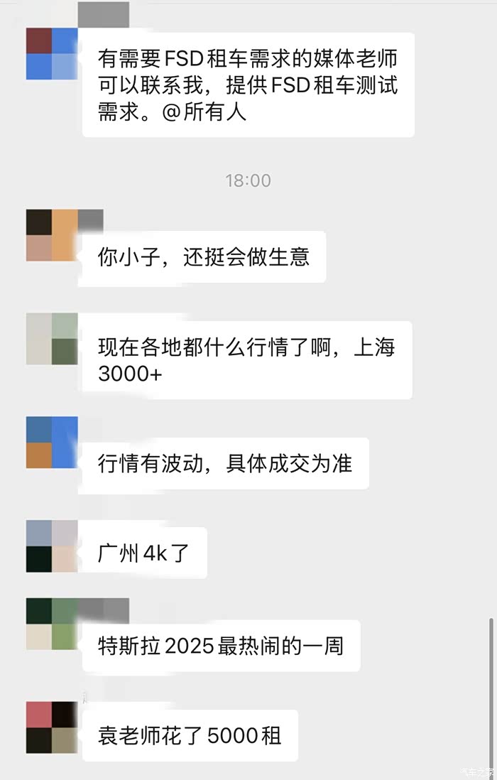 特斯拉这泼天的流量啊!大大小小博主都在抢着直播,搞租赁的也赚钱,带FSD的车报价已经3000-5000/天了。。。