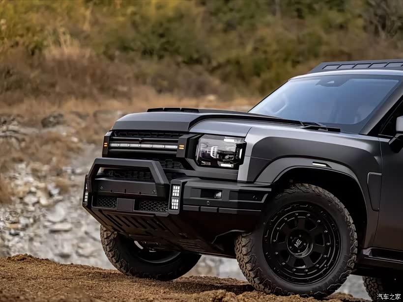 2.?越野元素加持:分体式大灯、机甲风格的前保险杠、外露式的铆钉装饰,搭配车顶行李架、侧踏板,把硬派感拉满。
