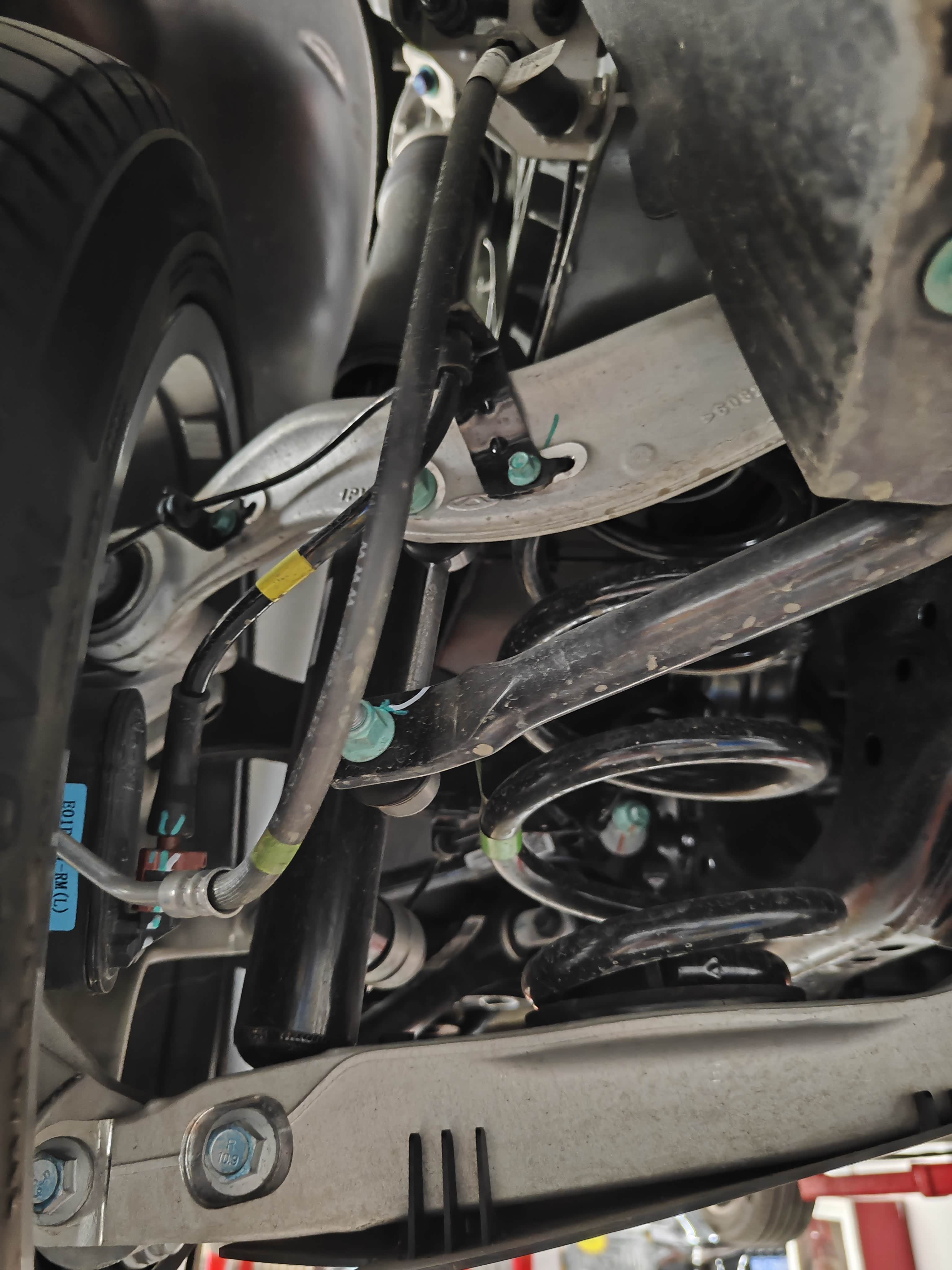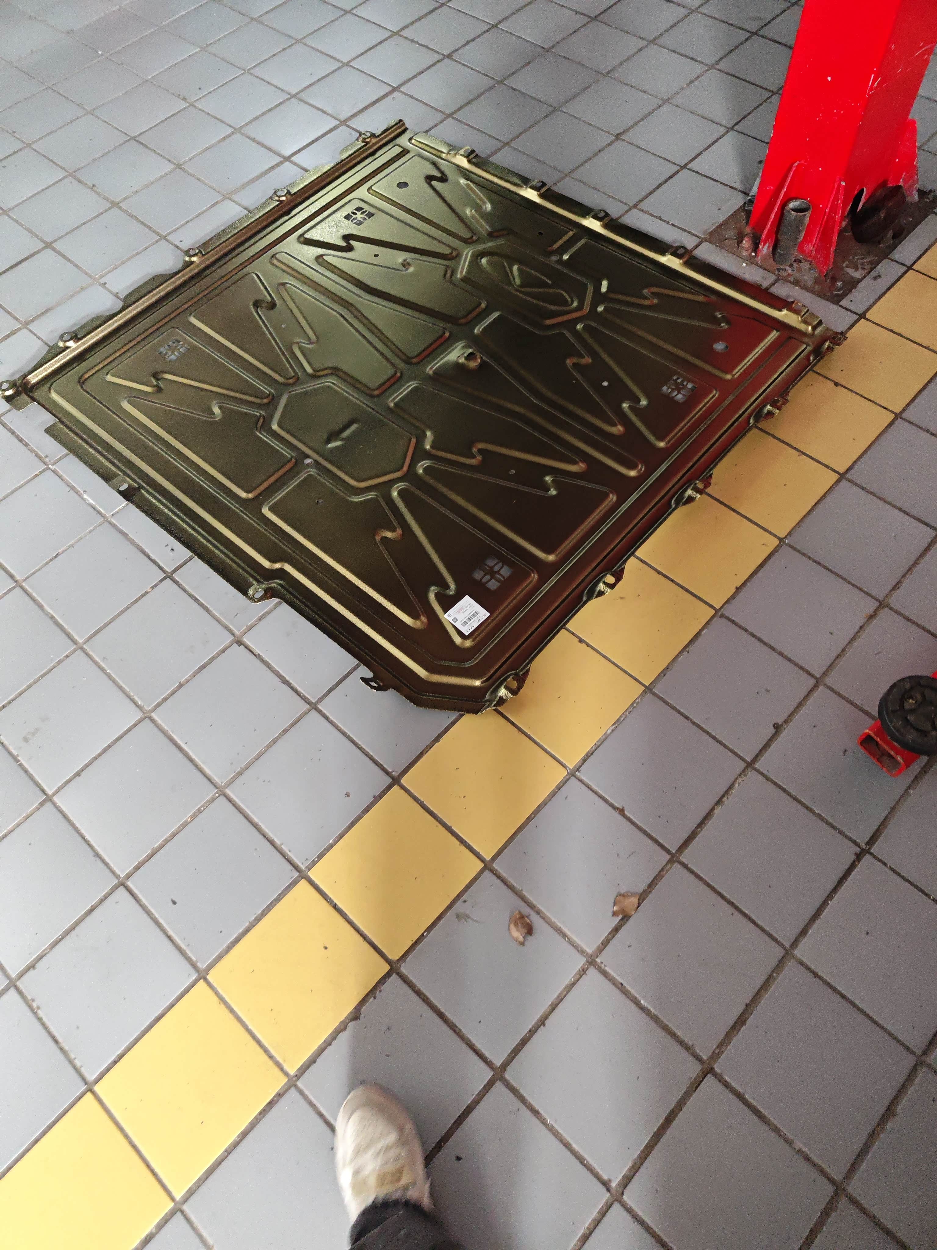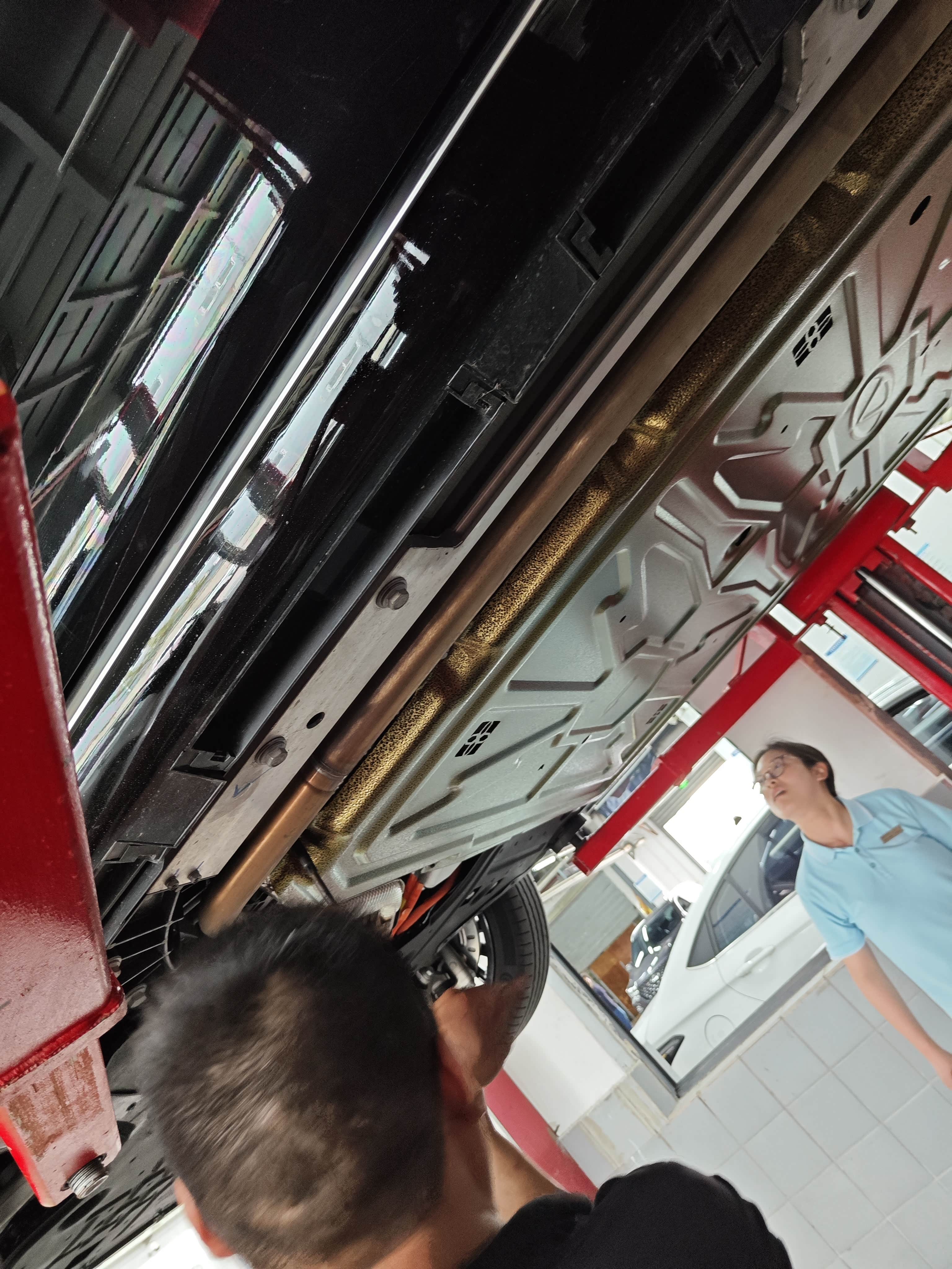 红色卡钳,帅不帅?伯牙版本变成了四驱,然后昨天升起来的时候,我还看了一下底盘,因为之前过一个烂路的时候,中间有块钢板,轮胎压到那个钢板上了,然后钢板翘起来,打到了我的底盘,确实平时走的路都比较好,就开的比较快,当时我马上停下来,自己趴下去看了,由于视线不够,就只能放着,然后现在升起来看了一下,发现也不是很严重,就刮了一下塑料,之前4s店售后还推荐我装一块护板,以防后面磕碰,那时我还觉得基本上没什么事情,结果真的磕到以后,我就突然觉得还是得装一块,至少电池得装一块吧,有点必要,装的很结实。