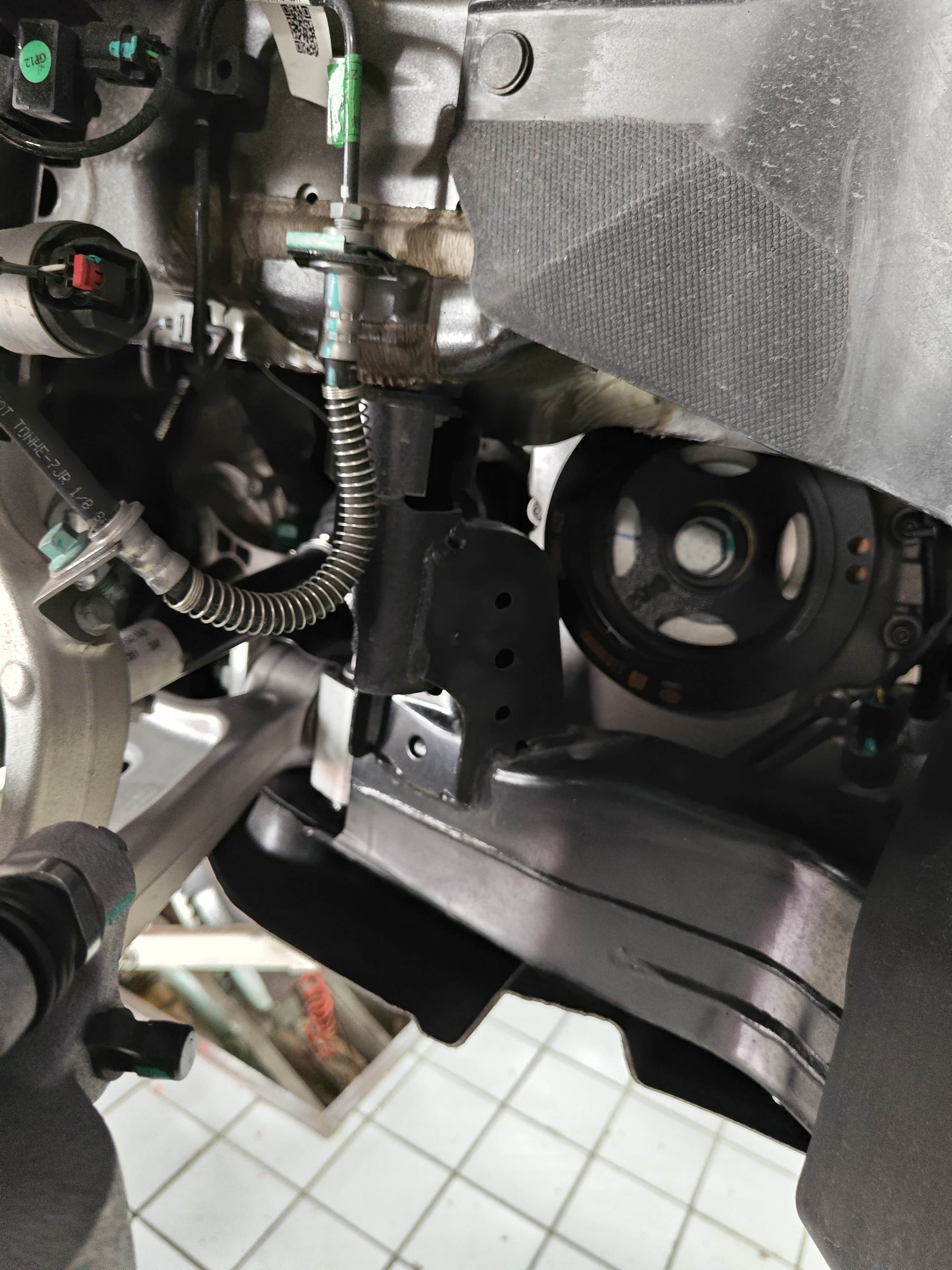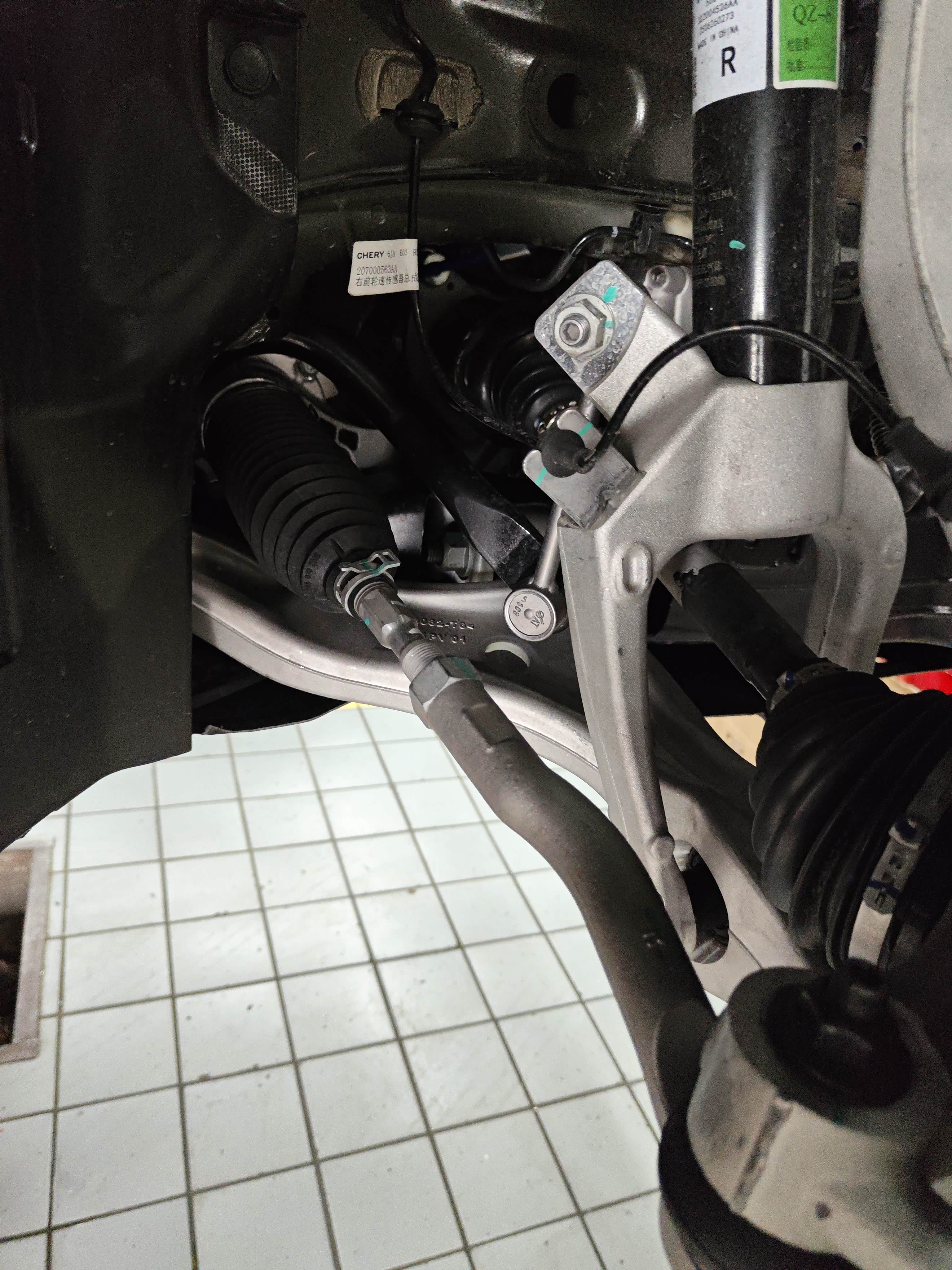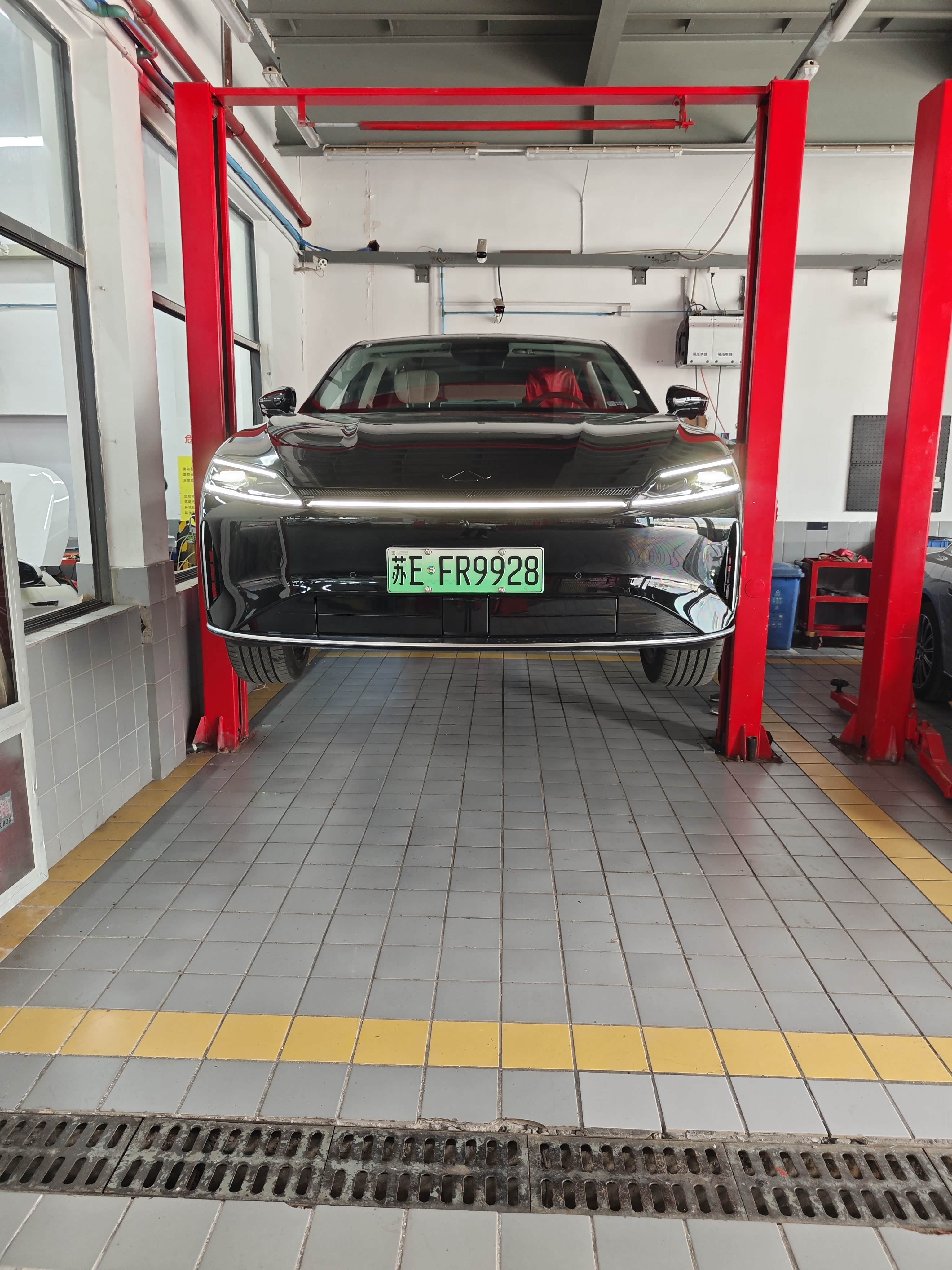 升起来的时候我还看了一下底盘,已经看了很多次了,但是依旧觉得很震撼,我这个价位能买到这种用料的底盘,所以我觉得现在国产车真的很牛逼,这个如果放在合资上,最起码也得要三四十万,抛开品牌谈用料,现在国产车真的性价比很高,前双叉后五连杆,全铝合金,副车架都是铝的,再加上有cdc悬挂,这个车开起来真的很稳,我之前高速上125飞坡,也是弹一下就拉住了,很平稳的过去了,过那种坑洼烂路也是不会很颠的,还是相对来说比较稳当的。