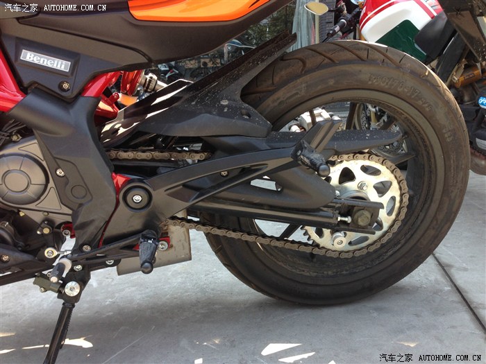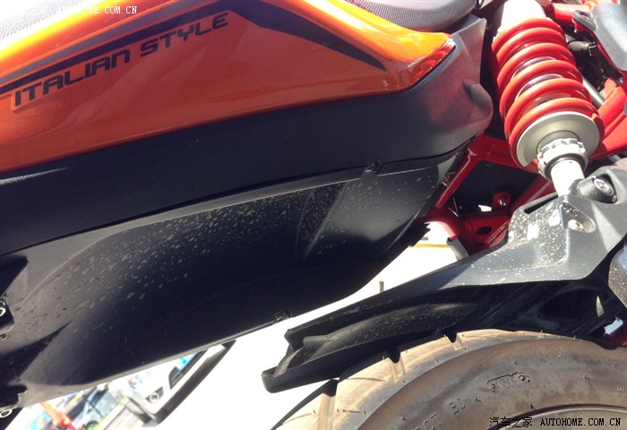但今天看到GW250和贝纳利300放在一起的时候,我动摇了,贝纳利300整体看起来更有大排机车的风范,裸露的红色车架,时刻让你兴奋,粗壮的邮箱(鸡腿个人感觉一般),后摇臂造型铿锵有力