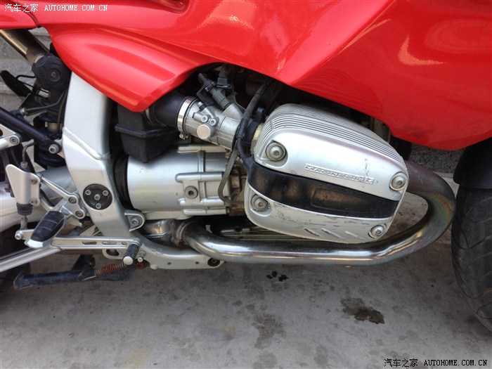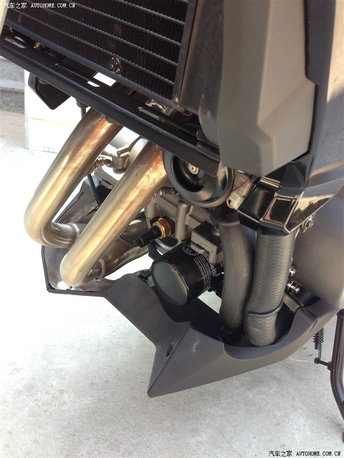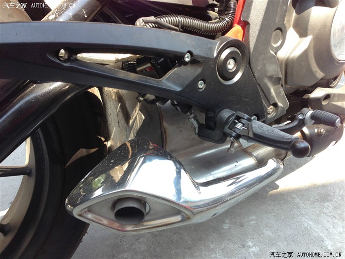 大家通过照片可以看到,排气是和一个类似油桶形状的东西连成一体的,店员说这是为了达到废弃排放标准而弄的,不知道是不是,看起来总感觉怪怪的,有哪位大神知道这个咚咚到底是干嘛的,放在这个位置总感觉不踏实。