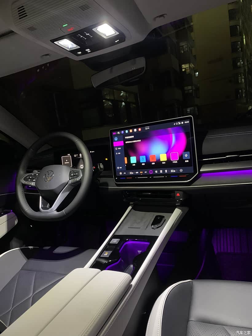 还有几个小细节让我觉得很贴心,比如车门的迎宾灯,晚上开车门的时候,大众的logo投影在地面上,仪式感直接拉满;全景天窗的采光效果很好,坐在车里感觉视野特别开阔。东北的冬天比较冷,座椅加热功能简直是刚需,上车几分钟就能暖乎乎的,太实用了,建议大家选装。