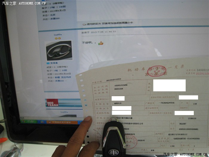 今年年初确定要买车,先后也去看了一些车,别克凯越,雪弗兰克鲁兹,新世嘉,逍客,哈弗H6,起亚K3等等。最后都被LD一一否决,直到5月份奔腾X80上市,LD一眼看中,就买它。。。。。6月1日去乌鲁木齐华鸿4S看车,试驾,订车。然后就开始了长达52天的等车,7月22日4S销售打电话车到了,23日叫上朋友一起去乌市提车。闲话少说上图了。