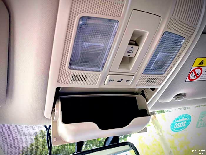 眼镜盒对于喜欢开车戴墨镜的我绝对是一个福利,只是有点小遗憾就是没有配备全景天窗,现在大部分的SUV都已经有全景天窗这个配置了,而CX-5仍然保留了小天窗,但是说实话丝毫不影响它的颜值你说奇怪不奇怪。