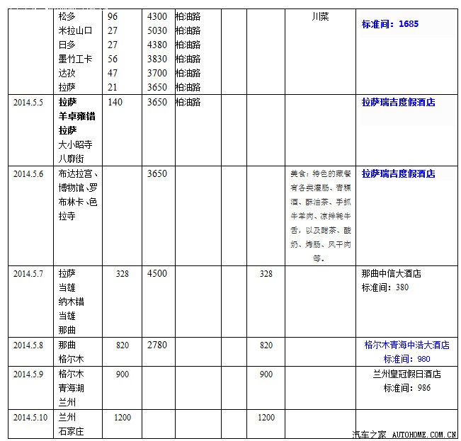 ★注意事项:注意进藏以后的限速,记得每次领好限速卡(每次离检查站远一点停车走过去领或交限速卡),进入川藏线有个叫“松多”的检查站,一定记着把车停在 停车线以外!“快到检查在的一个山弯处!”,拉萨市景点处处安检、查身份证(包括布宫广场),不得带打火机入内;布宫门票需要提前一天拿身份证预约;参观布宫不得携带打火机、饮料、刀具;拉萨紫外线强烈,注意防晒、防暑;