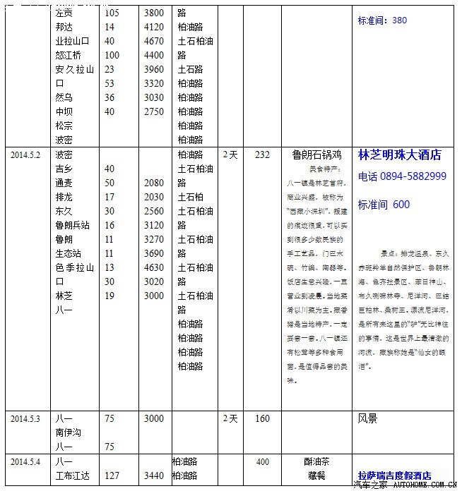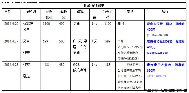 二 车辆保养:检查各种液面、制动系统、更换机油、轮胎(最好冲氮气)、灯光、补充玻璃水(较费);进藏切勿携带备用油桶,发现会被没收。途中请勿搭载拦车人(尤其是藏族),以免不必要的麻烦。