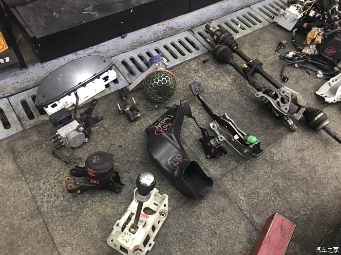 机器,波箱,电脑,机脚胶,半轴,离合油门刹车踏板,HKS进气,防盗控制盒,气囊控制盒,智能钥匙,全套线组,冷气泵,后桥底担碟刹,ABS感应线,手刹线,Tein避震,正品SSR轮圈,真是万事俱备,只欠安装了。说实话再齐的料,没有一个好的师傅,真别想着完美点着车,并且确保不出现故障码,移植并不是一件简单的事情。。。