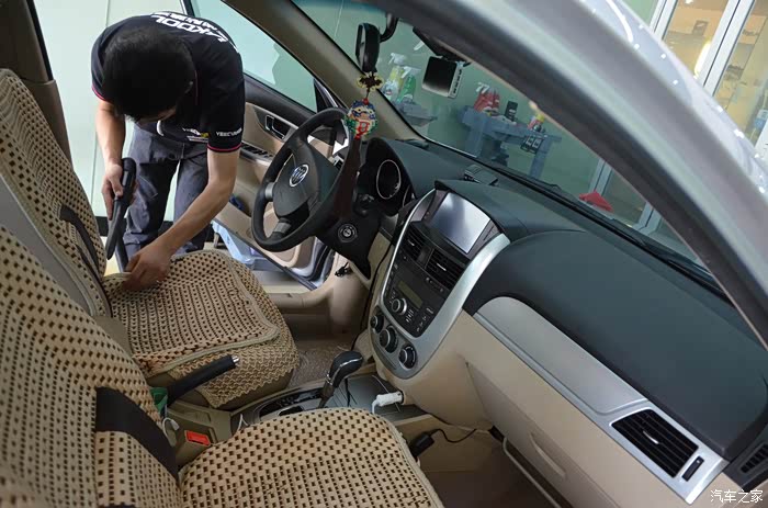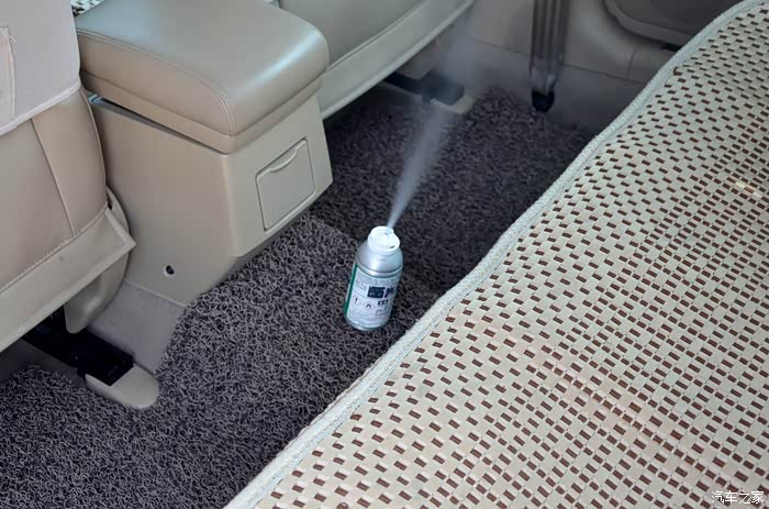 师傅仔细的在喷之前看了下手表并告诉我整个清洁过程需要用时15分钟,15分钟过后,取出并开车门进行通风
