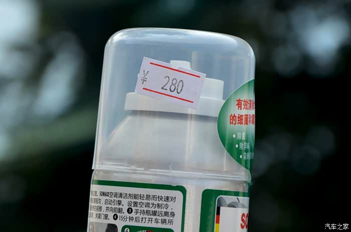 换个角度,问了下师傅,小的一瓶是放在车内使用的,大的一瓶是喷入空调进风口后,清洗空调内部的