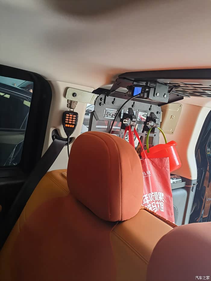 由于使用的时候有一些不方便,所以添置了后备箱顶架,把车载电台移到了顶架上,这样后排使用有线咪,前排使用时可以选无线咪进行通话。并对车载电台点烟器插头也进行了改装,改成带开关插头这样做到每一路都有单独的开关,总的点烟器也有总开关。