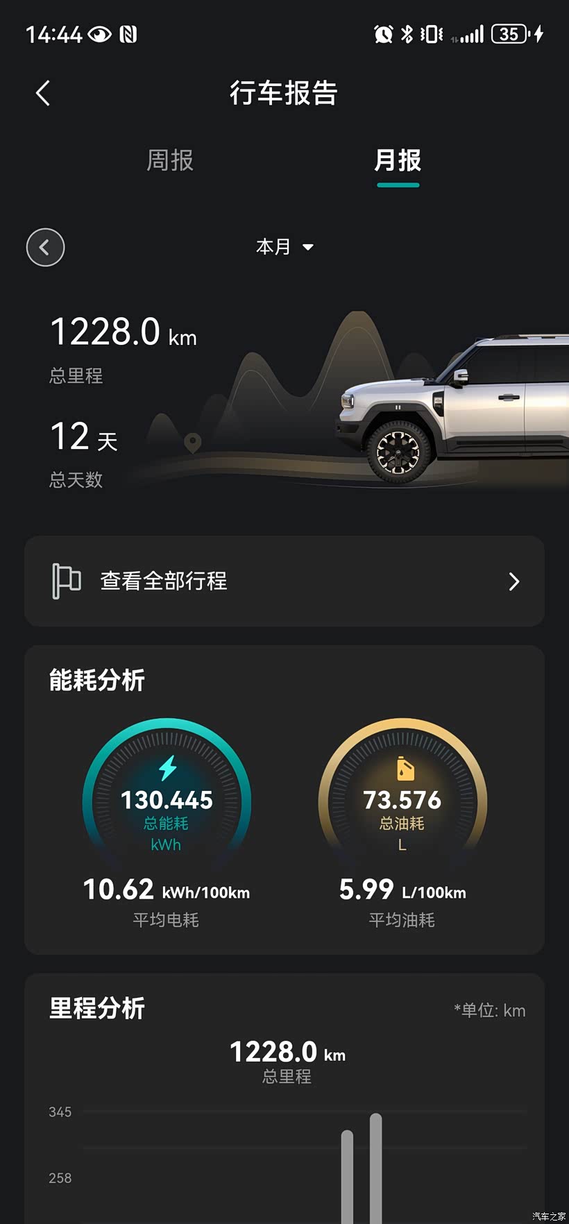 ✅日常通勤走8公里弹广路的烂路,换了AT胎+标准悬架后,滤震效果超出预期,以前开轿车过坑总担心爆胎,现在像坐船一样平稳,高速开到143码也比轿车安静,网传AT胎风噪大的问题根本没遇到。续航方面,加80L油跑了一趟600公里的武隆高速,回来还剩271km,城区纯电开电耗平均24.61度/100km,比官方标的更省,厂家送装的7kW充电桩,设凌晨低谷电充电,每月能省不少电费。