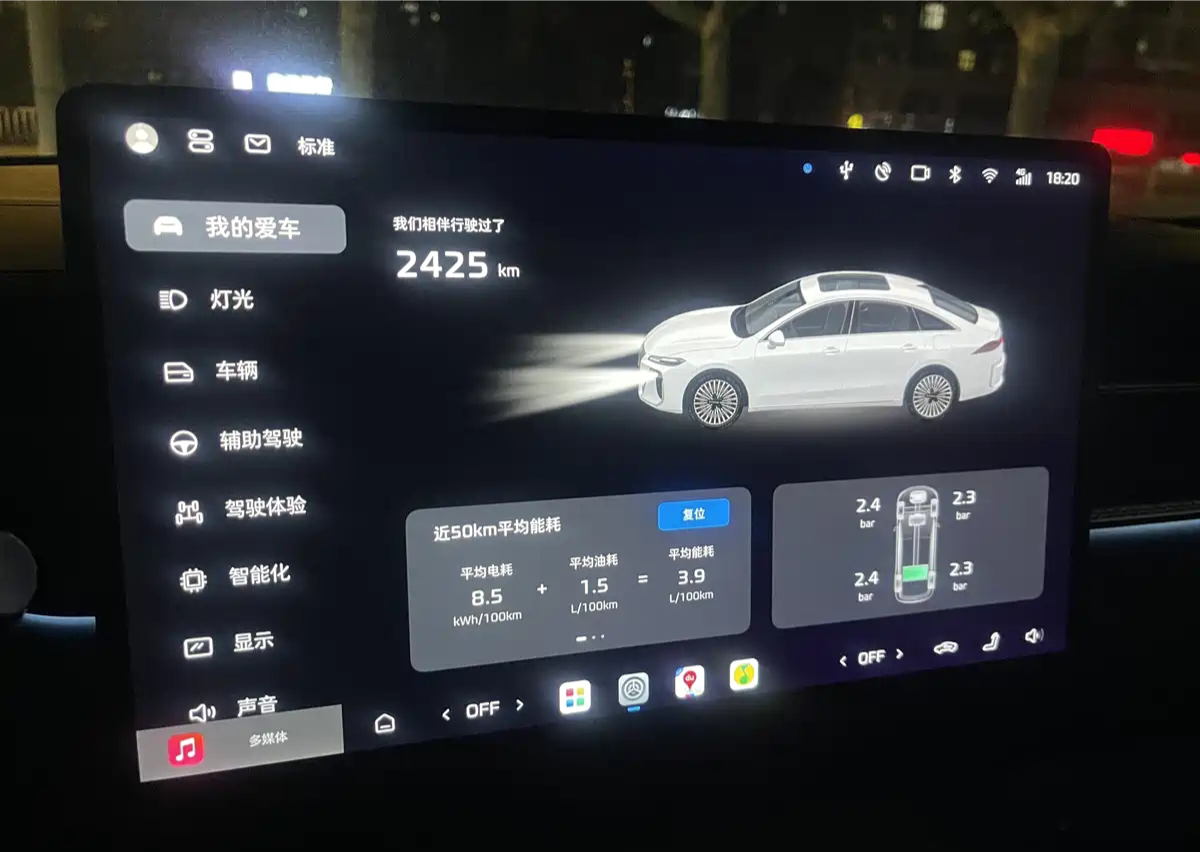 这一较长的综合续航主要得益于它所搭载的上汽自研DMH超级混动系统。该系统采用1.5升插混动力,在纯电模式下,CLTC工况续航能达到160公里,可满足多数城市日常通勤需求;当电量不足时,车辆的燃油发动机开始工作,其馈电油耗为2.91升/百公里,燃油经济性较为出色,能进一步保障车辆长距离行驶,最终实现1300公里的综合续航,有效缓解用户的续航焦虑,适合长途出行。总体上来说还是不错的一款车.c