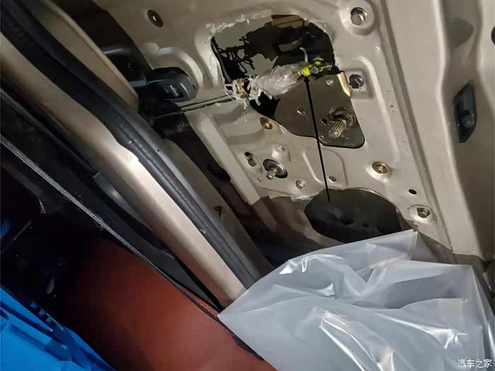 其他位置,直接用手将玻璃胶涂抹进去。。。车门沉重了一些,噪音也小了很多