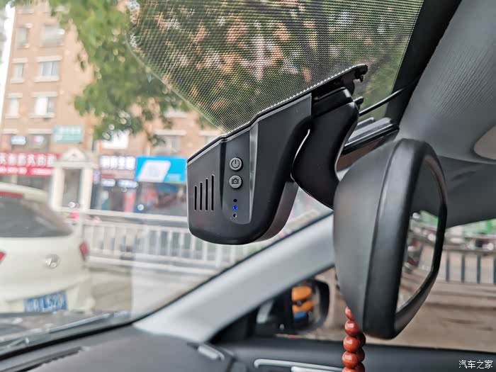 首先这个记录仪准备安放在后视镜后面,这样就不会干扰驾驶了,跟原装的一样