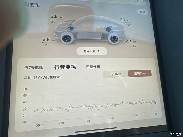 看系统里的能耗数据,近7天平均电耗14.6kWh/100km,但那是“理想状态”,冬天实际得打个对折往上的折扣:83度电满电的话,按23kWh/100km算,实际能跑个360km左右,要是遇上堵车、开暖风久了,可能也就300出头。