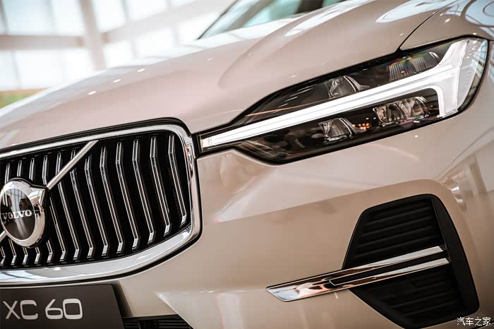 沃尔沃XC60外观仍然延续家族式设计手法,宽大的直瀑式进气格栅让整个车头看起来很秀气,