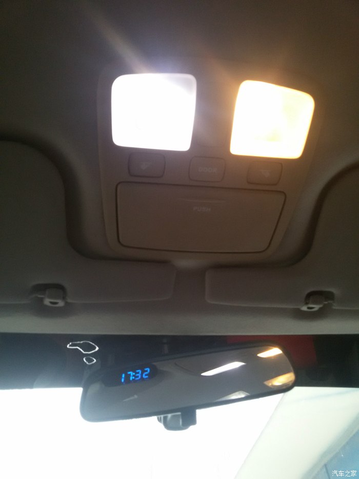 1、 改装阅读灯、 眼镜盒、内后视镜时钟显示