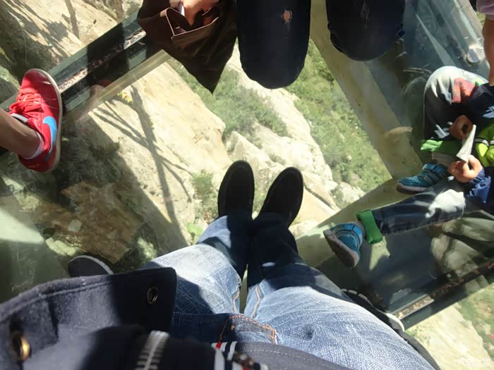 开始走上号称世界上最长的玻璃栈道了,悄悄的说一下,有人在这上面吓哭了哦,你敢来试试吗?走在玻璃上面,脚下能看到万丈深渊,心里素质不好的勿看