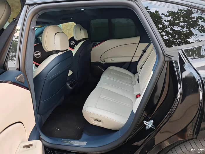 我选的蓝白内饰非常有质感,座椅的填充物很软,包裹感不错。前排一般碰到的地方都是皮质软包包裹的。顶部是翻毛皮,就连门板附近都用