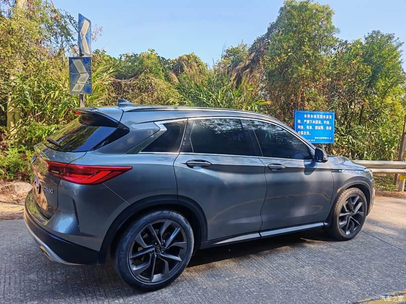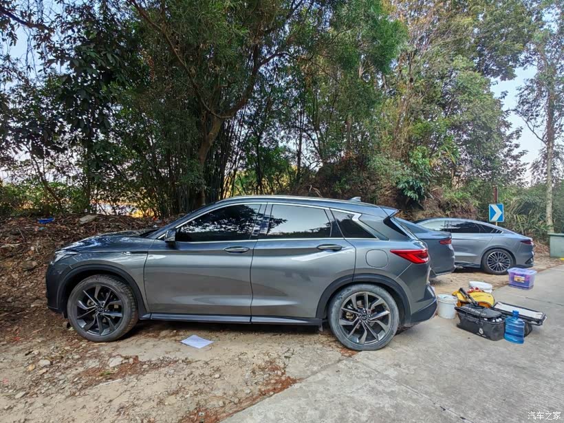 英菲的离地间隙很大,一般车这样停早就啃泥巴了