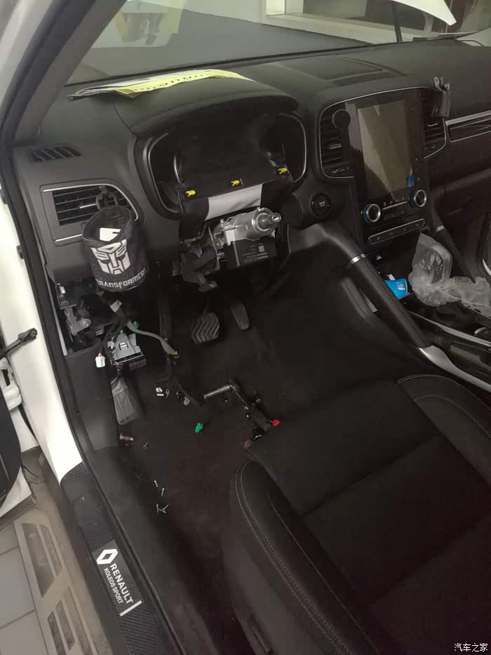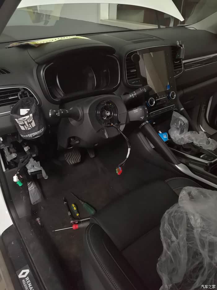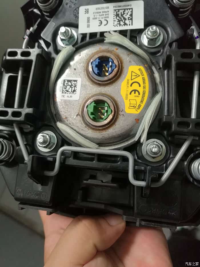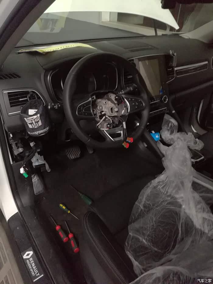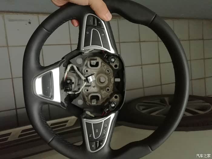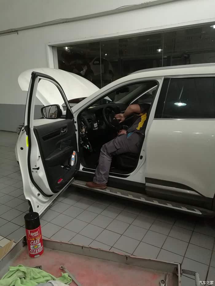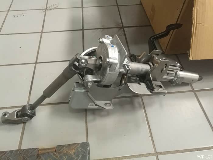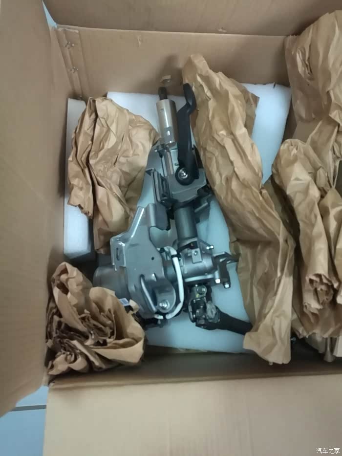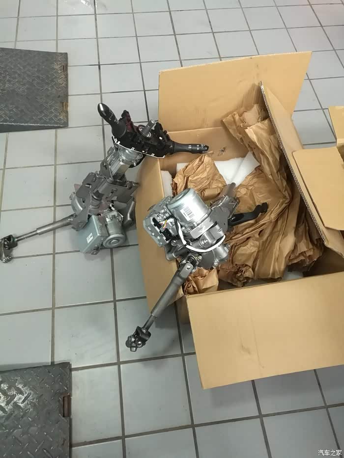 好了,现在说说为什么要不远百里开到异地去首保。大概在使用到2000多公里的时候,在地下车库等安静的地方原地打方向盘时,能够听到方向盘下面传来“疙疙瘩瘩”的响声,声音不大,也不影响方向盘正常使用,但我是个完美主义者,一丁点响声我都接受不了。于是到南昌的4S店去检查,技术人员说不能准确判断声音是从哪里传来的。据我自己的经验,应该是方向管柱某个部位互相接触发出的声音。于是乎,这个声音就成了我无法忽视的问题。但继续开了几千公里,声音没有变化。后来与买车的4S点进行沟通,把情况进行了描述,并把声音录下来给技术人员听。技术人员反馈说,是有点响声,经与厂家进行沟通,车子在保修范围之内,可以免费更换。哈,正好快到首保的公里数了,趁着周末,开去买车的地方更换转向管柱并做首保。下面开始上图,有些平时大家看不到的零件,下图中会一一展示。