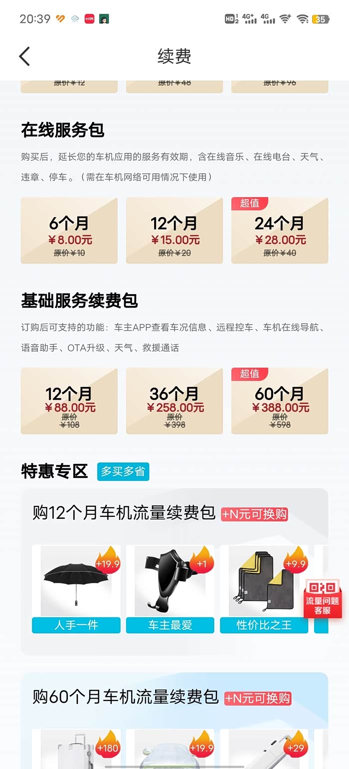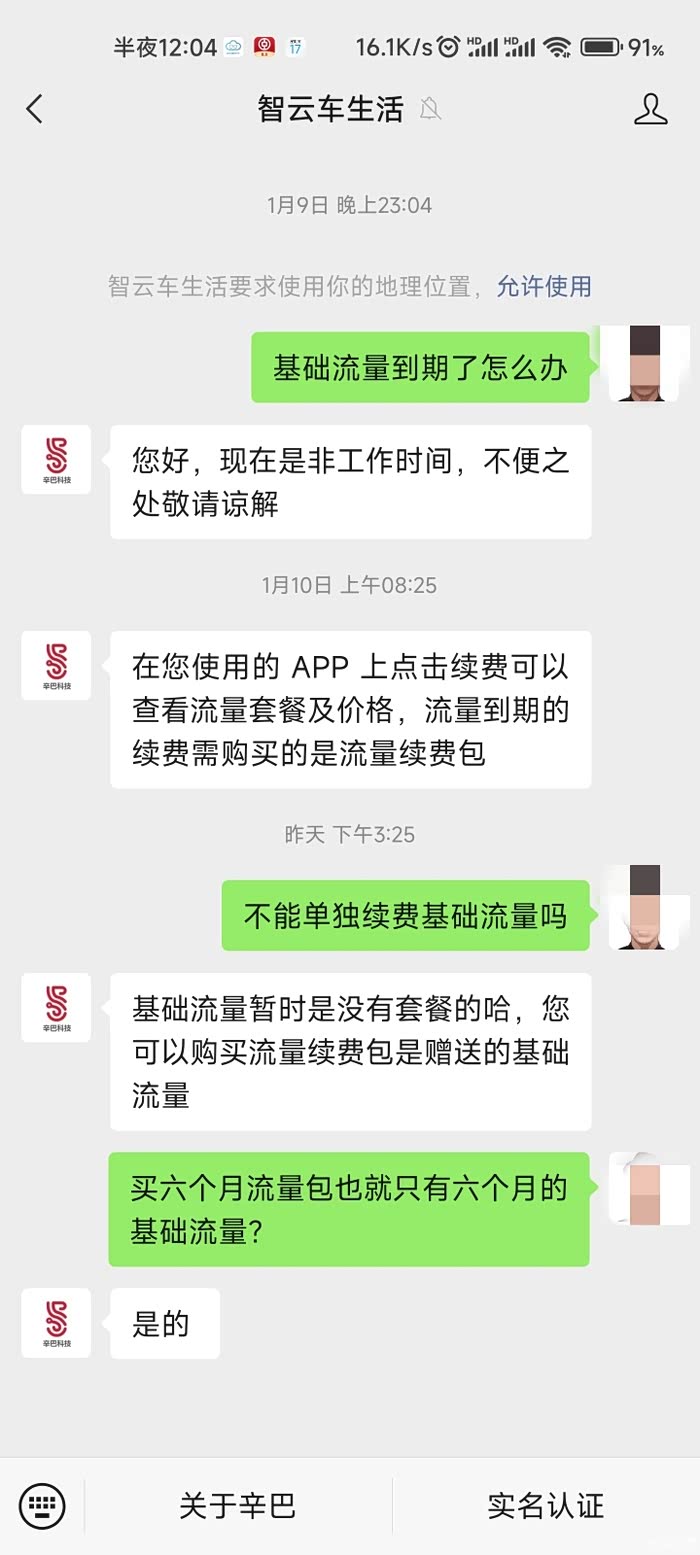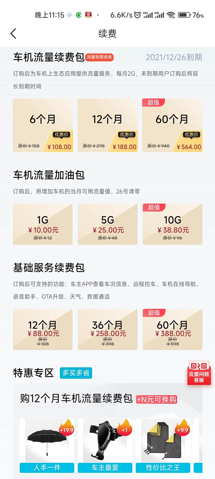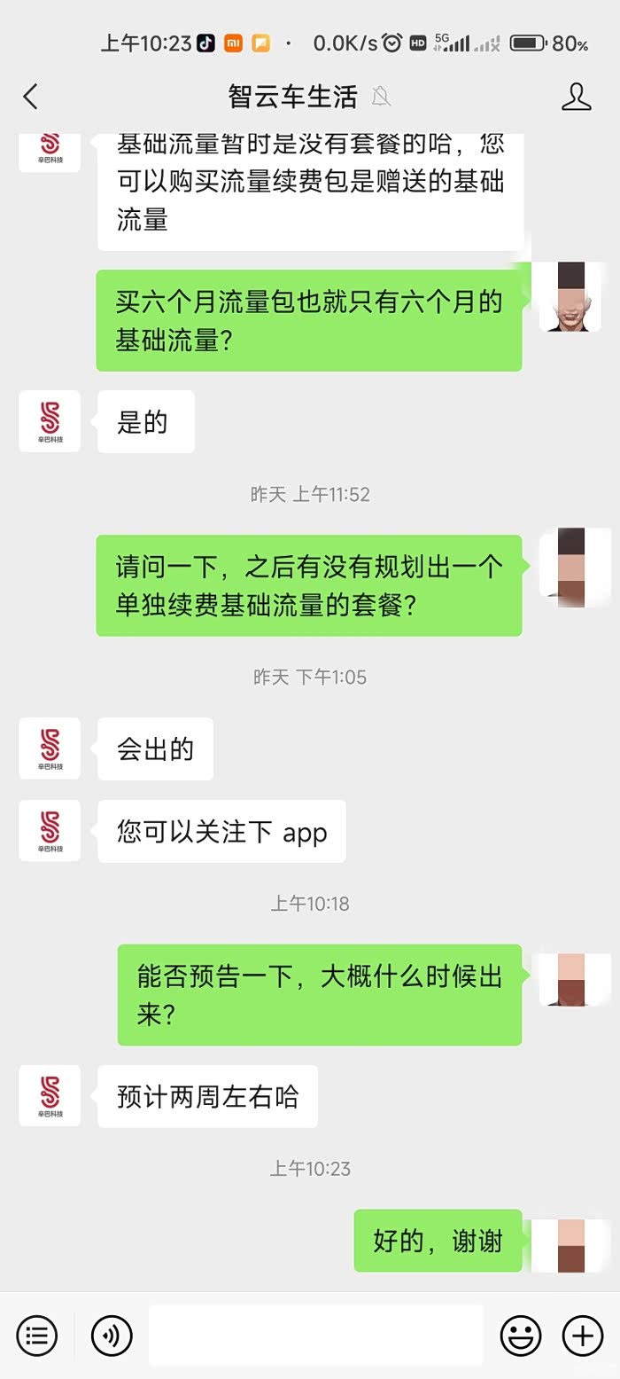 18年八月份提的胡巴,其实在21年的时候娱乐流量就到期了,但是娱乐流量对于我来说没多大用,几乎没使用过,而需要车子联网的就是平常用的比较多的智云互联,远程开车开空调等等,之前也了解过车机流量分为娱乐流量和基础流量,今天收到奇瑞的短信,通知车机流量到期,我大概算了算,差不多应该到期了,因为之前问过客服,客服说的是基础流量只有五年,今天再次问了一下客服,可不可以单独续费基础流量,客服的回答是目前没有,但想着这个流量半年就一百多,实属不划算啊,真希望官方出一个续基础流量的套餐,不知道各位车友对基础流量有没有像我这样的刚需