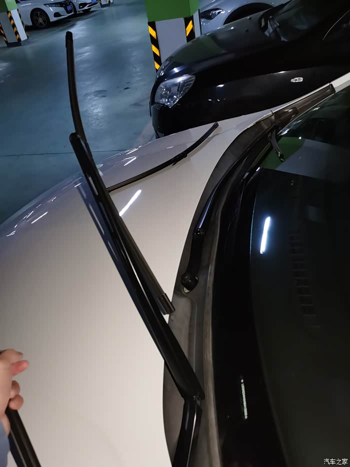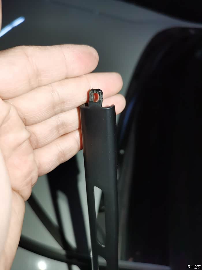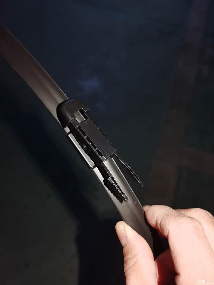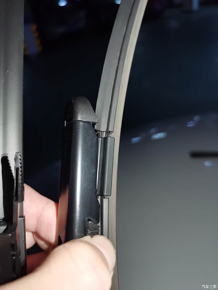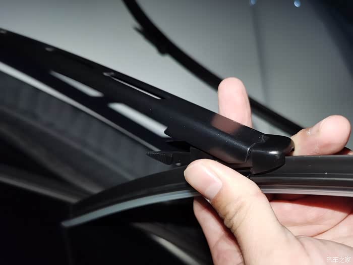 特别提醒,千万不要拆下雨刮器胶条翘着雨刮器杆子,一旦砸下去,直接砸到挡风玻璃上,玻璃肯定会被砸出裂痕。要么垫块布把雨刮器铁片放在布上,要么就手里拿着新的,直接拆下旧的装上新的。