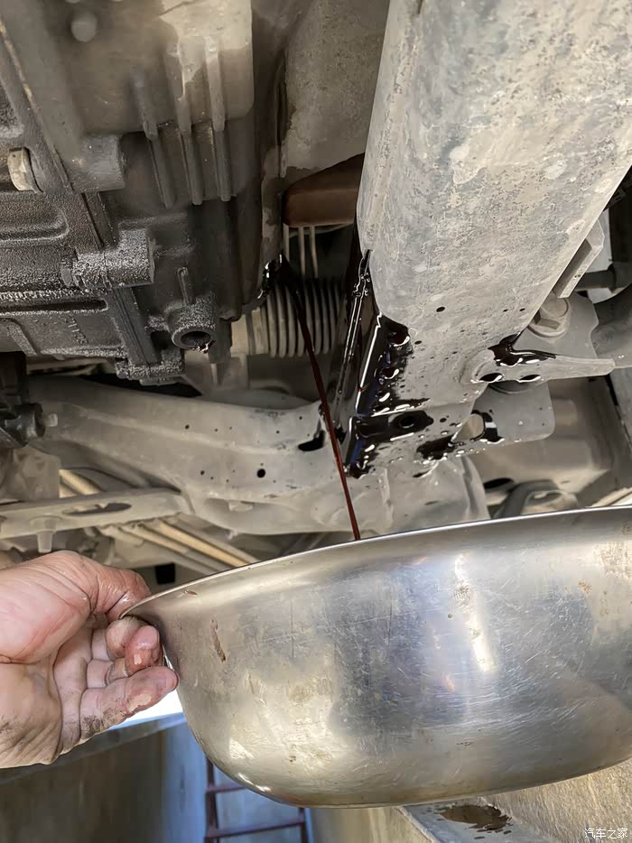 自己做保养,很厉害,变速箱油我还是选择机器循环更换,换出来得油都是黑色的,而且12升油都没有完全换成新油的透亮红色