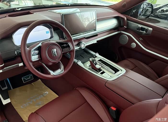 坐进车里,更是被它的豪华内饰惊到。座椅又宽又厚,皮子摸起来软乎乎的,销售说这是顶级真皮,坐上去就不想下来。车内到处都是软包材质,手能摸到的地方质感都特好。中控台上那块大屏幕清晰度超高,操作起来顺滑流畅,各种功能一目了然。