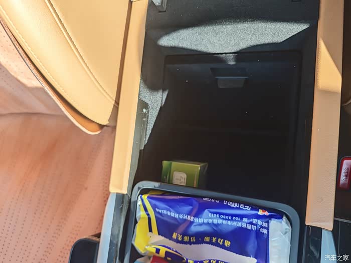 第四个就是中间这个储物盒,原厂就是一个很深的洞,我买了一个分层的,下边可以放一些不怎么用的东西,而且最下边有进风开关,夏天开凉风,放一些小饮料还是有效果的,冬天也是,也会稍微暖一些,取决于你的空调温度和风力强度,不需要可以关掉。