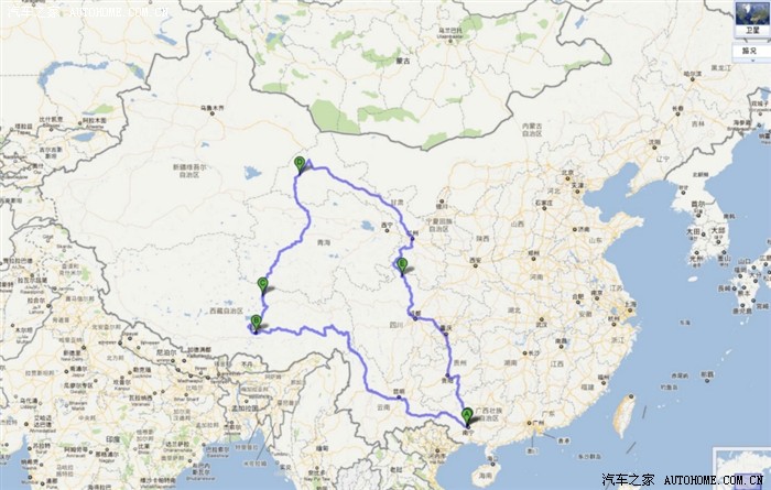 出发之前我08年12月6日购买的1.3排量手动档同悦,已经快6万公里了,这2年多来每当节假日除了自驾游广西本地各个有名景点外,我还自驾游全国不少地方,去过上海、浙江宁波、永康、海南三亚、博鳌、文昌东郊椰林、云南丽江、香格里拉、梅里雪山、西双版纳、四川九寨沟、黄龙、成都、广东等地,走过了全国14个省、直辖市、自治区,车子性能说不上有多好,但从没把我丢在路上过。为了这次出行的安全,专门为车子作了全面的检查,更换不少配件,四个轮胎全换新的还带多一个备胎加起来就是二个了,多带一个小的油压千斤顶(这次起了大作用了),减震器特地加装缓冲胶使底盘提高不少,发动机还加装钢护板,带了机油、机滤、皮带、灯泡、火花塞、电瓶搭线、铁线、拖车钢丝绳、保险丝、吸油管、1.2米长铁铲、电动气泵、水靴、通气管、AB胶水、防水电筒、简易修车工具等; 出发前买了一大堆食品、水、糖果、饮料,还有些常用的药品以及在西藏部分路段向你车子敬礼的小朋友要分发的铅笔、本子等;另外车内还增加了一个150W的逆变电源和插线板、用于手机、相机、对讲机、手提电脑等设备的充电,衣物特地准备了一套我们冬天才穿得上的衣服另外还每人多带了一件冲锋抓绒服(虽然是夏天但在西藏路上全都用上了!),最关键的是GPS导航这次我带了三台,在路上分一台给同去的一台车,后来对他帮助还挺大的。