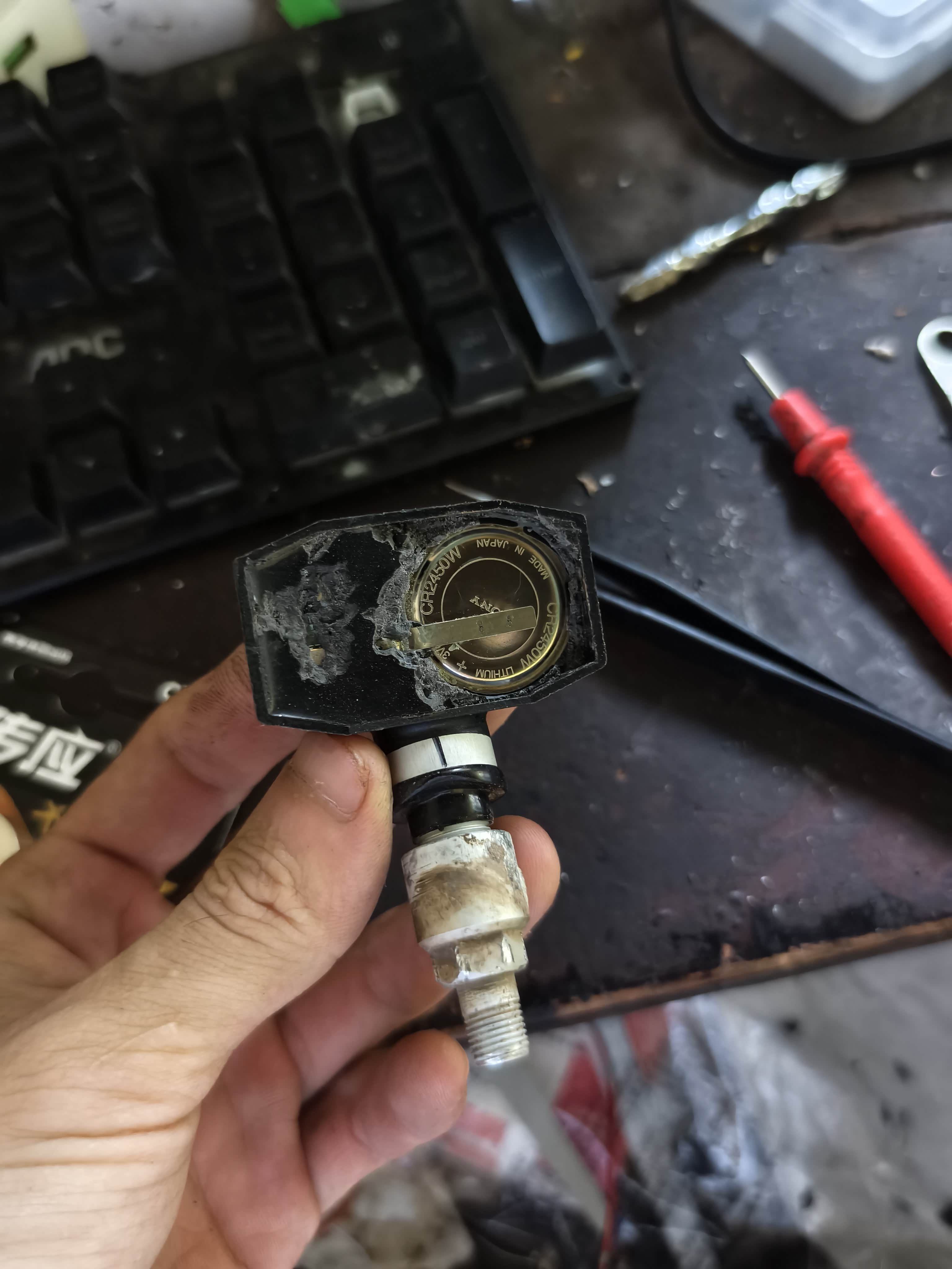 原车胎压传感器报故障码不显示就是电池没电了,只需要踩下胎压传感器更换纽扣电池即可