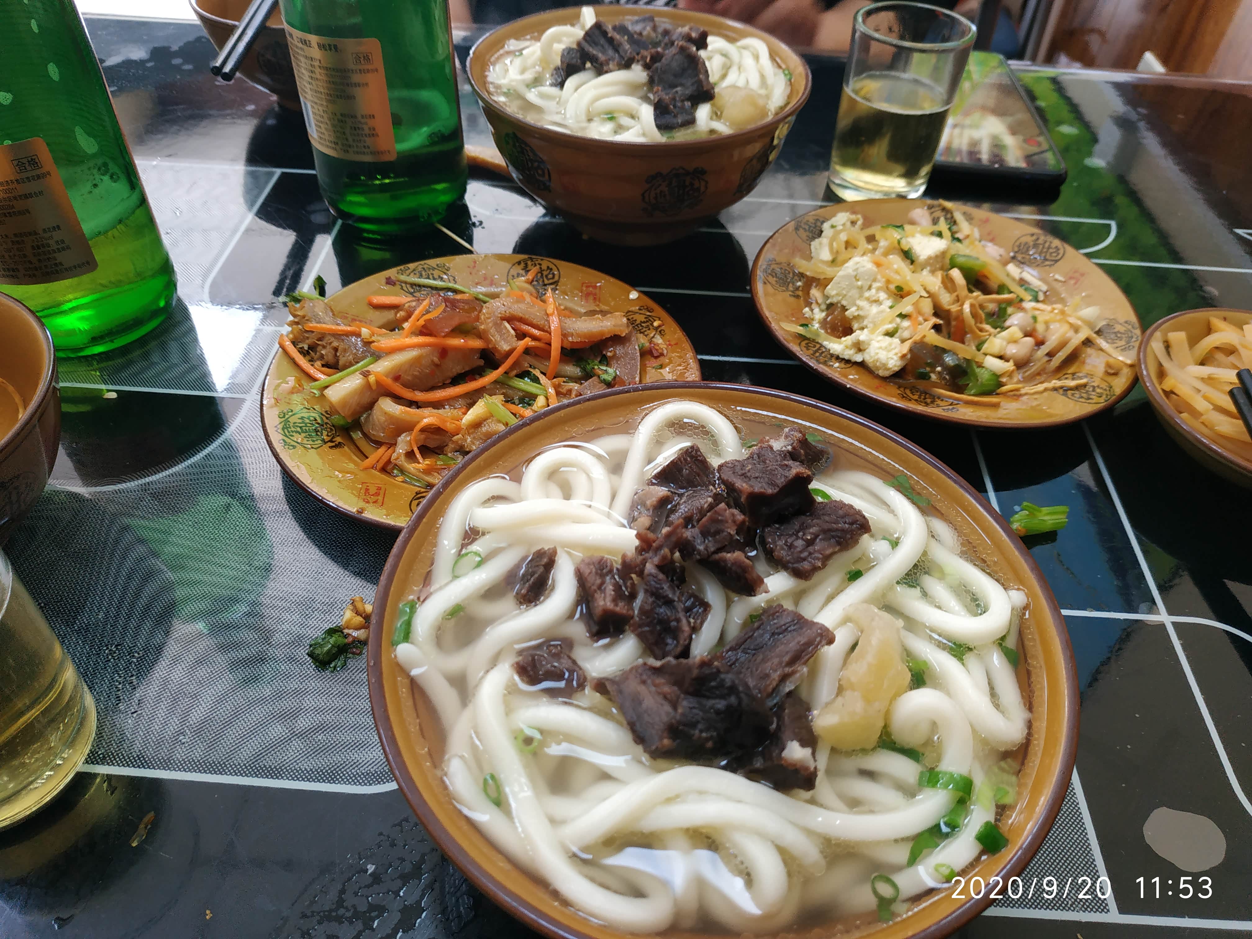 这是新巴尔虎左旗的风干牛肉面和拌菜,味道真的很好!