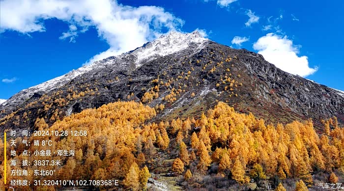 二〇二四年十月二十八日,理小路彩林季到了,阿姓峰盖雪了,四川的“独库公路”“阿勒泰”…以最美的彩林雪山景观首次问世,赶紧上路!关键是可以当天往返的彩林雪山观景!