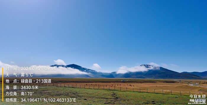 二〇二四年九月二十六日,由甘南合作市入川的草原晨曲:广袤无际染金黄,风吹草低现牛羊,白云绕山哈达献,牧羊小女赛儿郎。