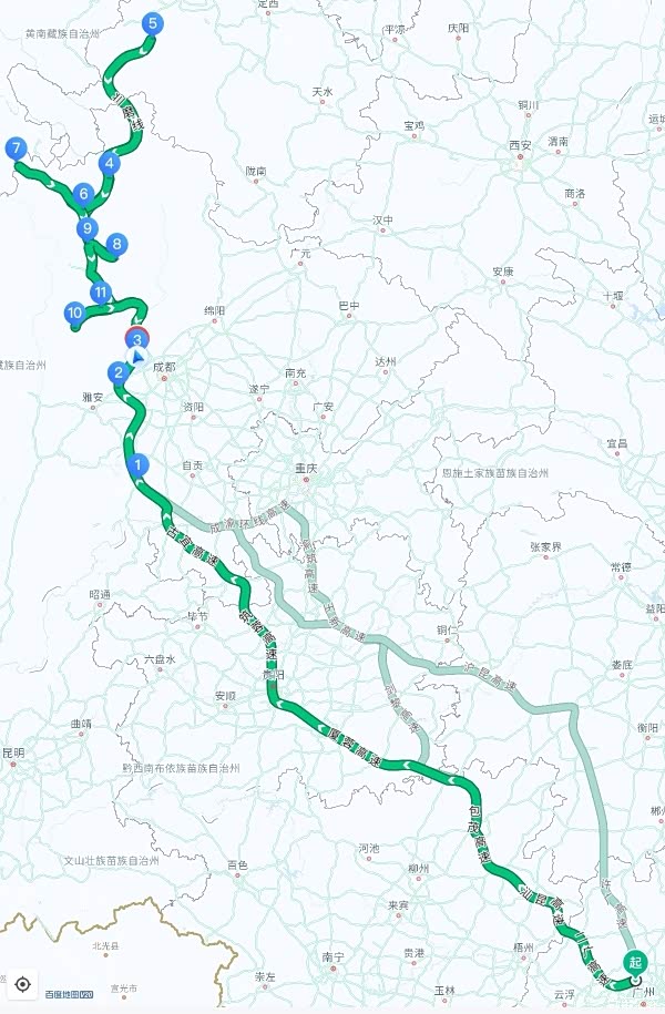 二〇二四年七月十日,终于驶上了龙年返蓉的高速行程。这一天,有一段心心念念了三年的高速新路:贵金古高速!从贵州贵阳经金沙至四川古蔺,双向六车道高速公路,这使得一日穿越粤、桂、黔三省进入川界成为了可能。